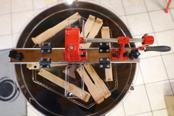 Holds 6 medium frames and/or 3 deep frames. Manual