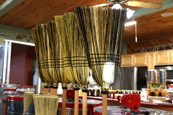 Made from Yellow and Black dyed straw, these brooms are a striking addition to your cleaning tools!